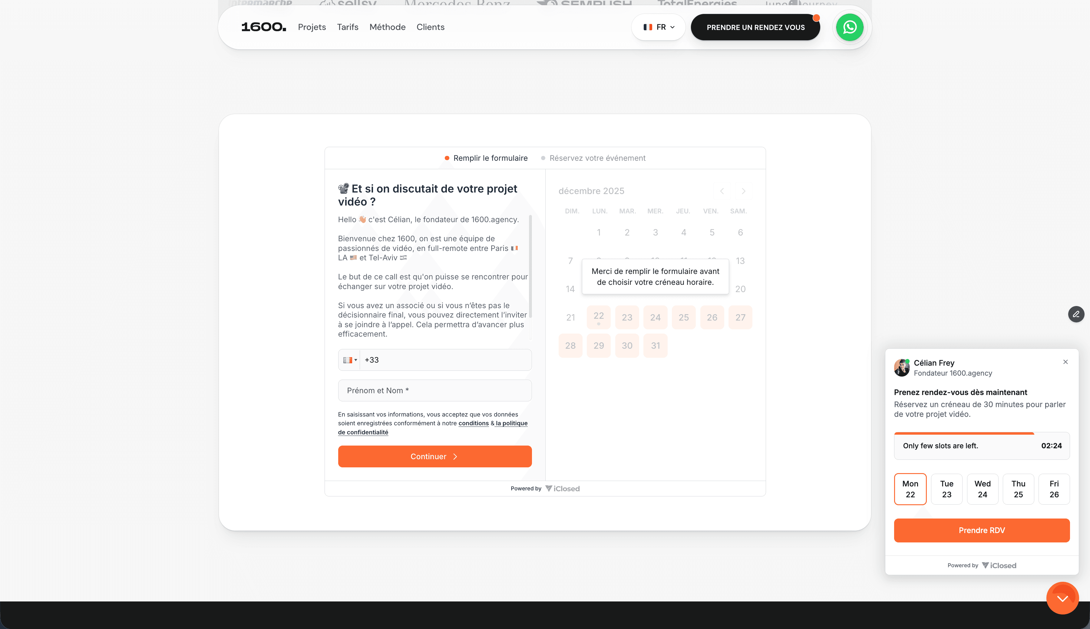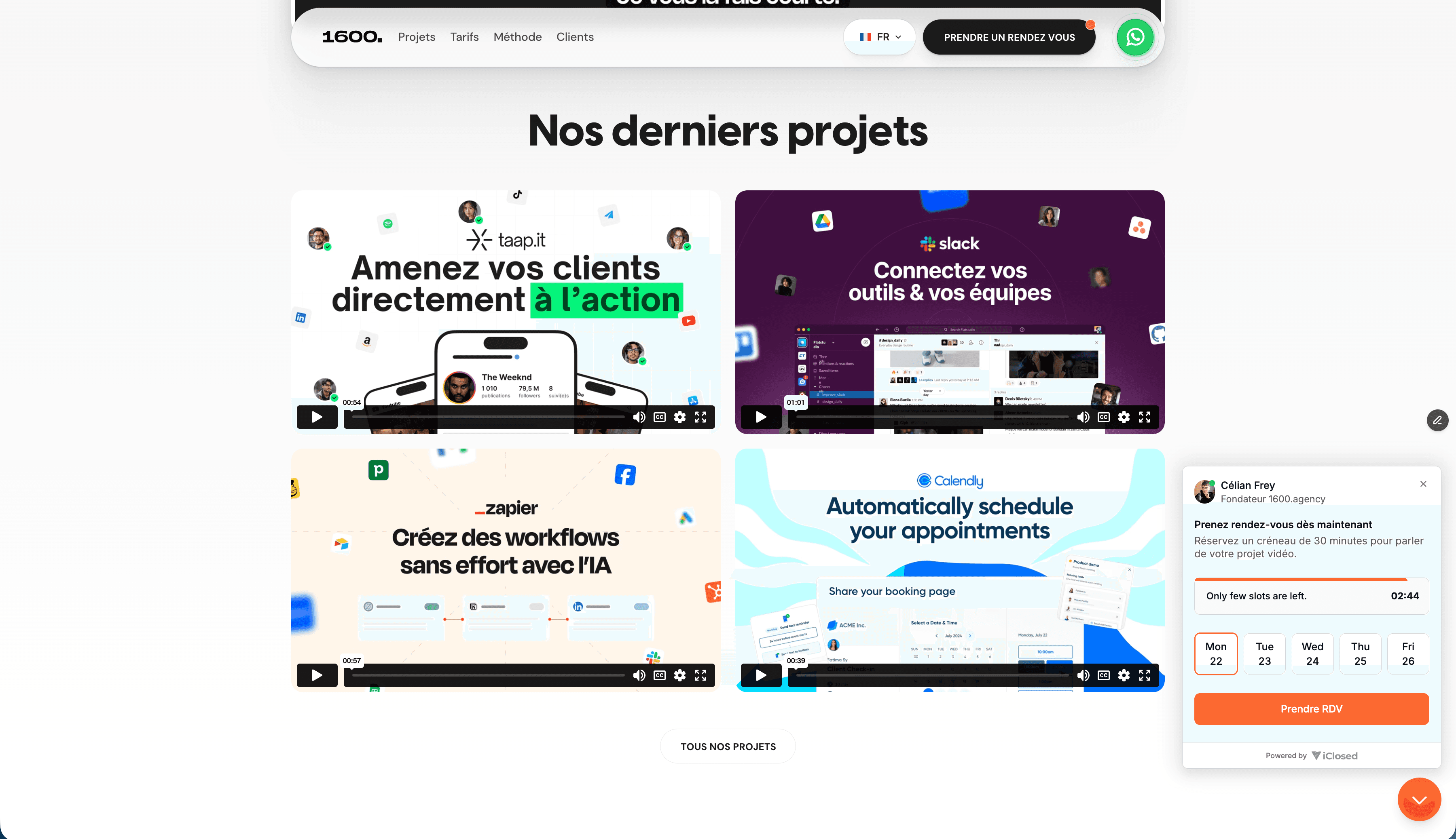 Solution : Création d’une landing page ultra léchée orientée storytelling, avec le script de la VSL avec un focus sur la réassurance (logos clients, témoignages, process), et d'une partie vitrine pour exposer le portfolio