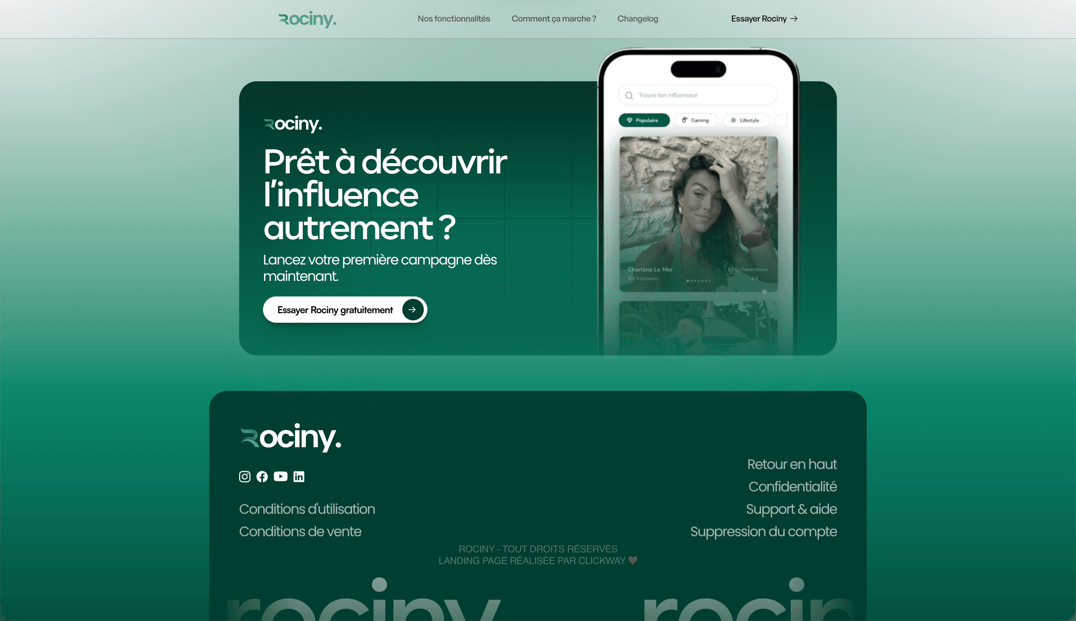 Nous avons réalisé la landing page de Rociny.